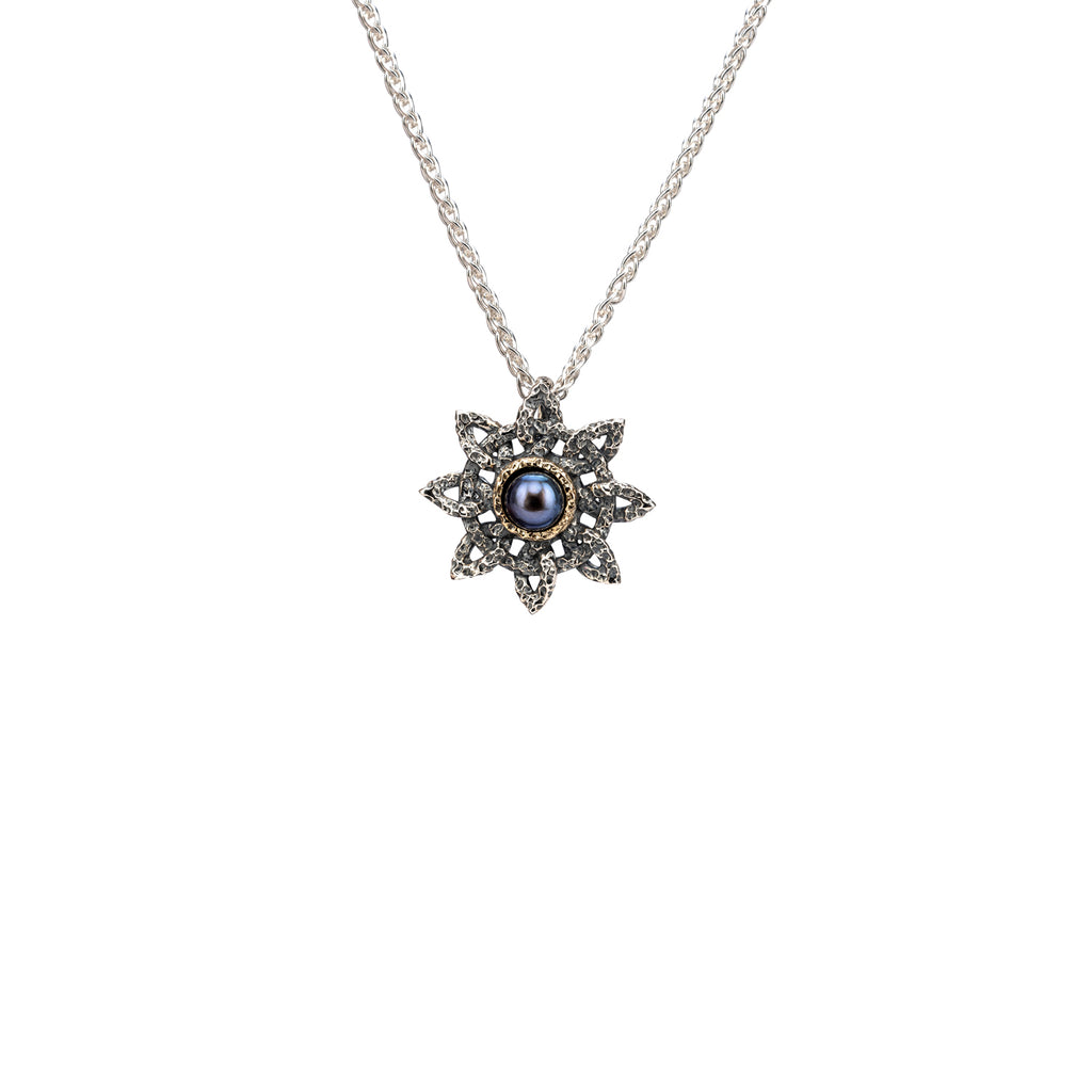 Silver and 10k Gold Aphrodite Sea Star Pendant - Peacock Fresh Water Pearl
