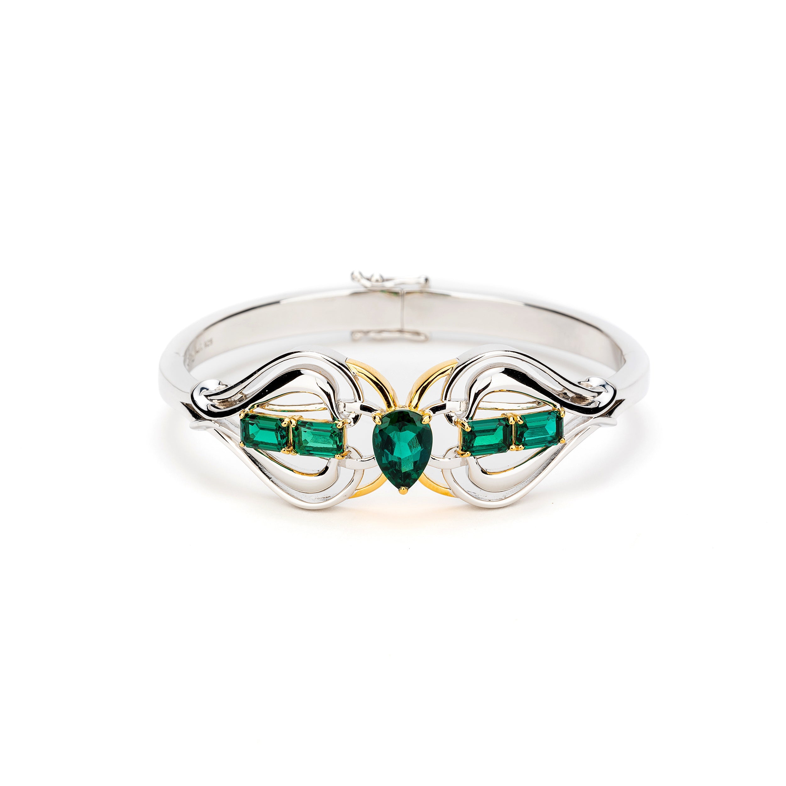 Silver and 18k Vermeil Lab Grown Emerald Alchemy Bangle