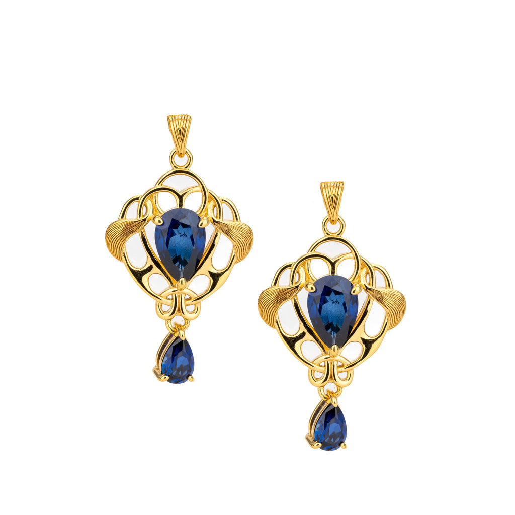Materials: 18k Vermeil (2.5 micron) on Sterling Silver,  Lab Grown Blue Sapphire (Pear Cut 9mm x 6mm and 6mm x 4mm))