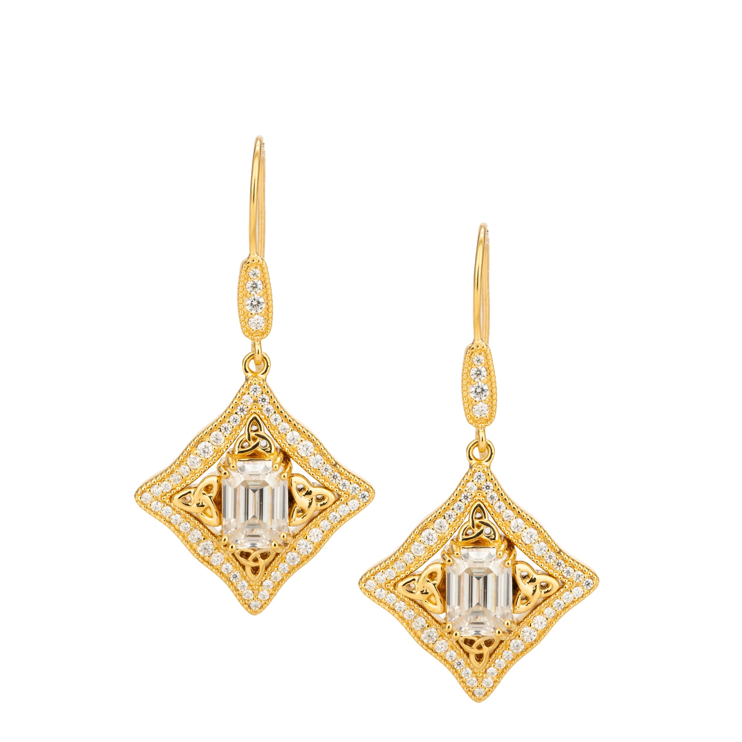 Materials: 24k Vermeil (3 micron) on Sterling Silver, White Moissanite (Emerald Cut 8mm x 6mm, Round 1.8mm)