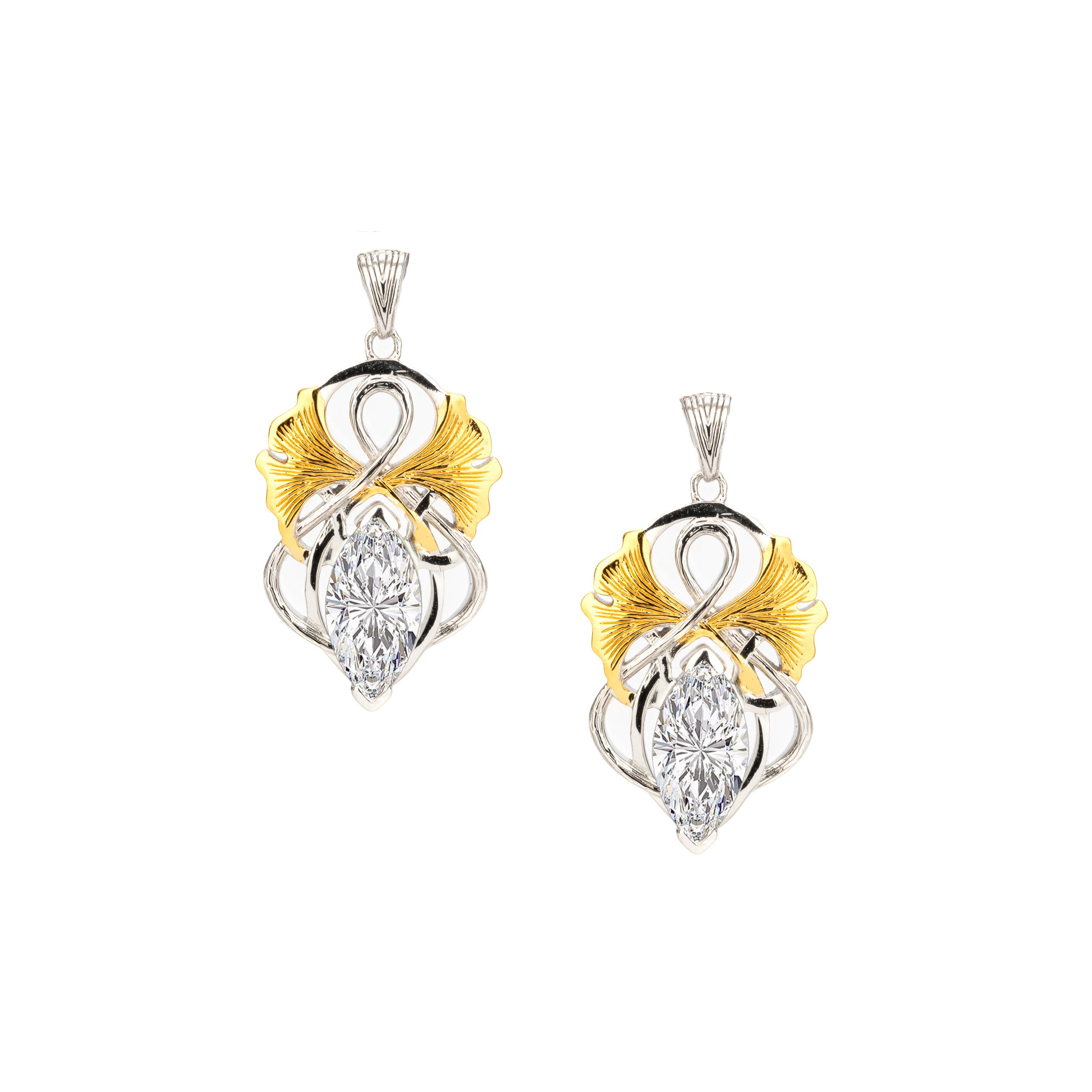 Silver and 18k Vermeil with White Moissanite Ginkgo Leaf Angel Drop Earrings