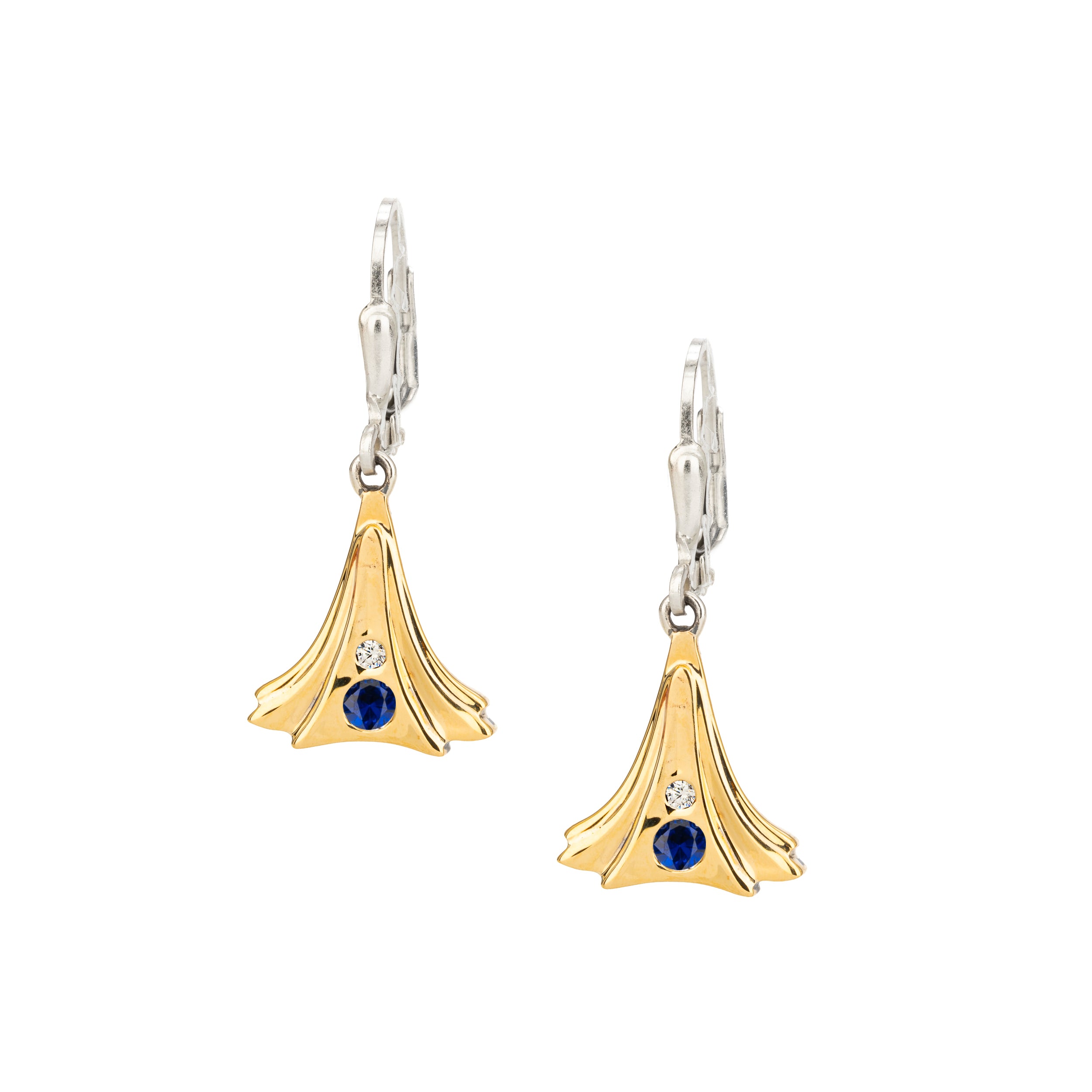 Materials: Sterling Silver with 24k Vermeil (3 micron), Lab Grown Sapphire (Round 3mm), White Moissanite (Round 1.8 mm)