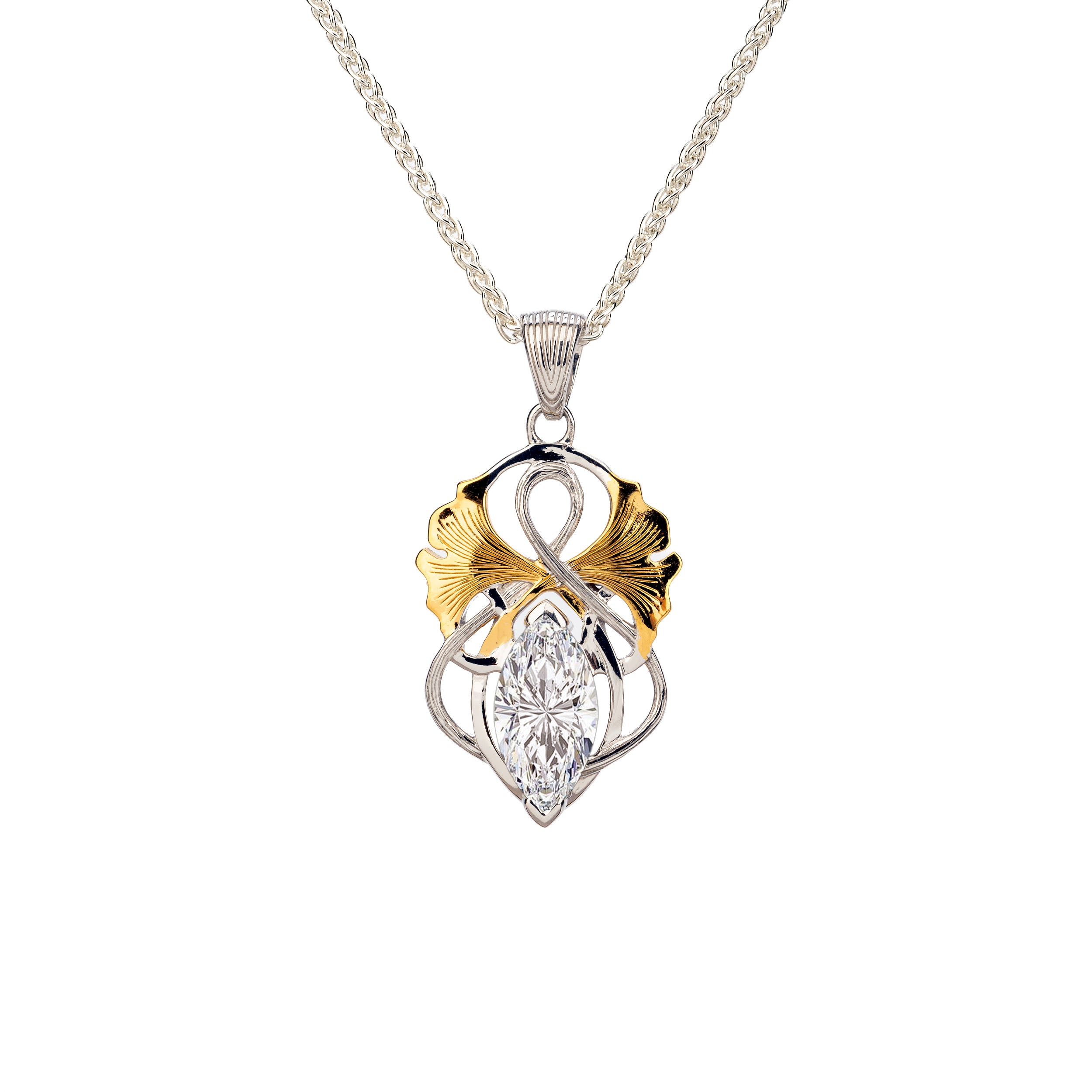 Silver and 18k Vermeil and White Moissanite Alchemy Ginkgo Leaf Angel Pendant