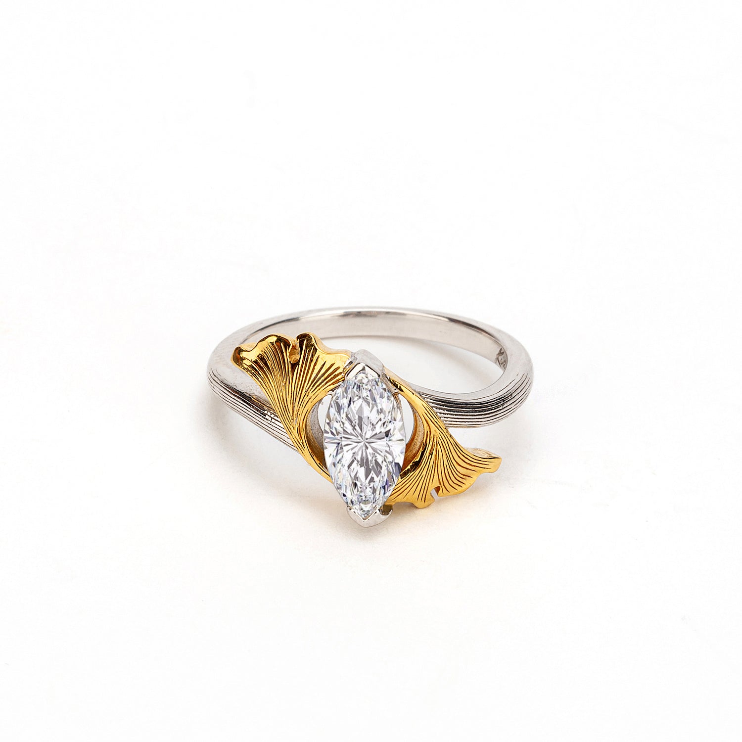 Materials: Rhodium Sterling Silver and 18k Vermeil with White Moissanite (Marquise 10mm x 5mm)