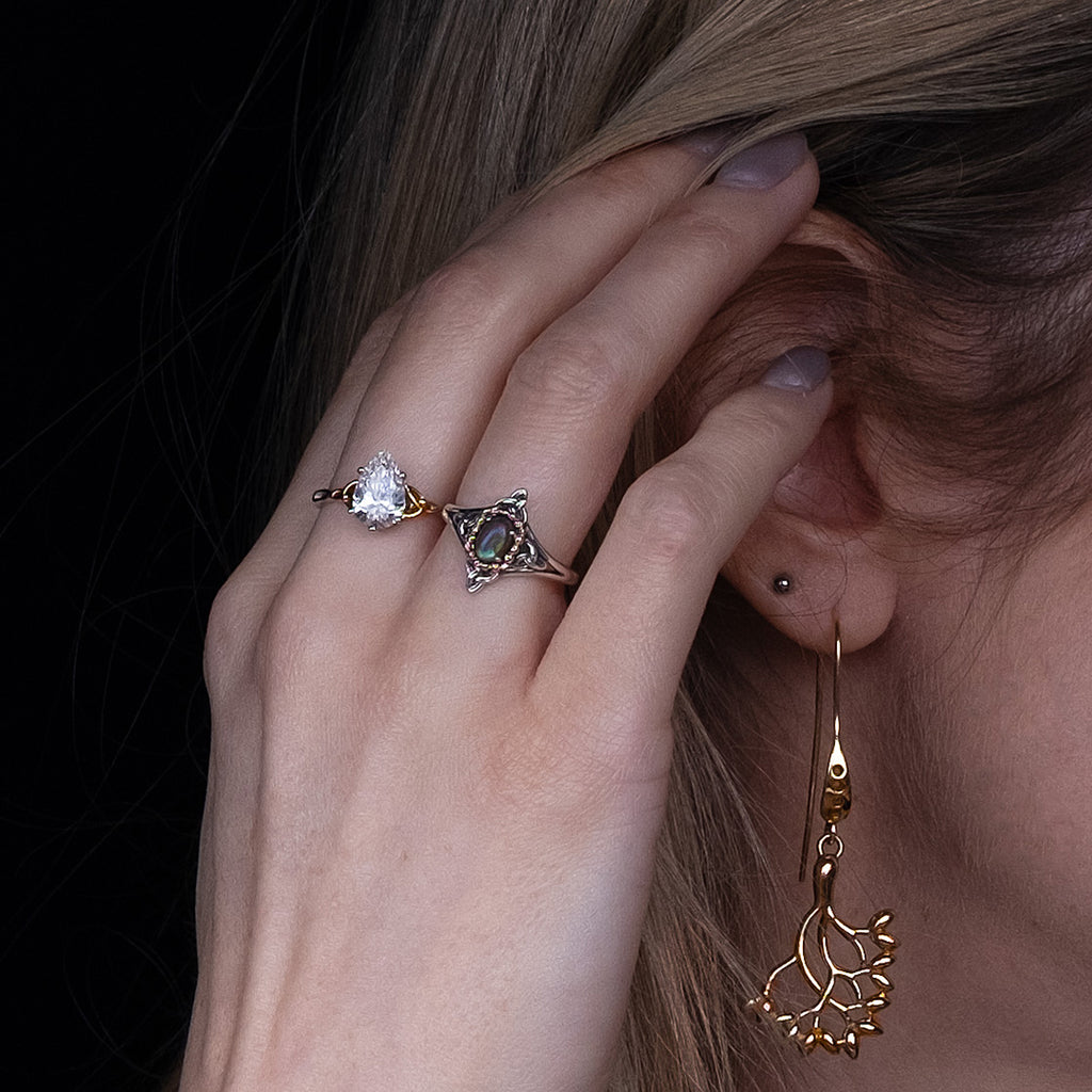 Materials: Sterling Silver and 10k Yellow Gold with Labradorite. Our gemstones are natural and each stone is unique to you, therefore, colors may vary from the photo.